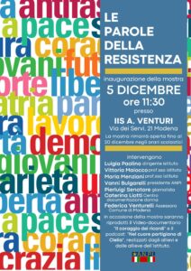 Venerdì 5 dicembre alle 11:30 la mostra verrà inaugurata all’ IIS “Adolfo Venturi” in Via dei Servi, 21 a Modena, che resterà aperta fino al 20 dicembre, visitabile negli orari di apertura dell’Istituto.
